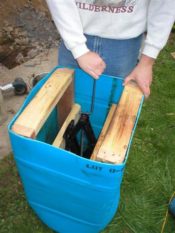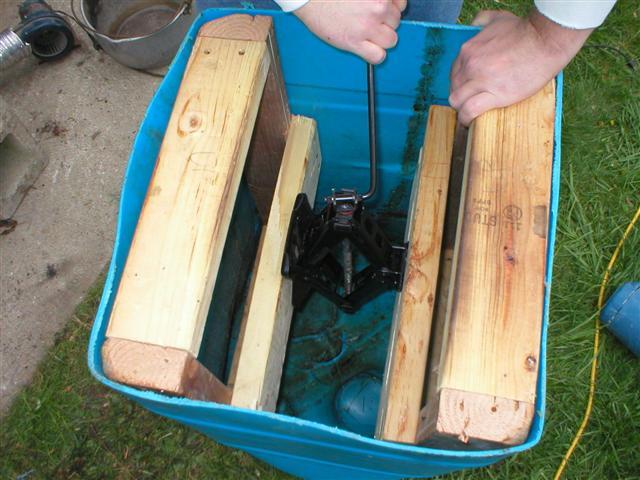 Insert the forms and car jack into the barrel as shown.